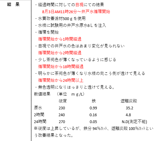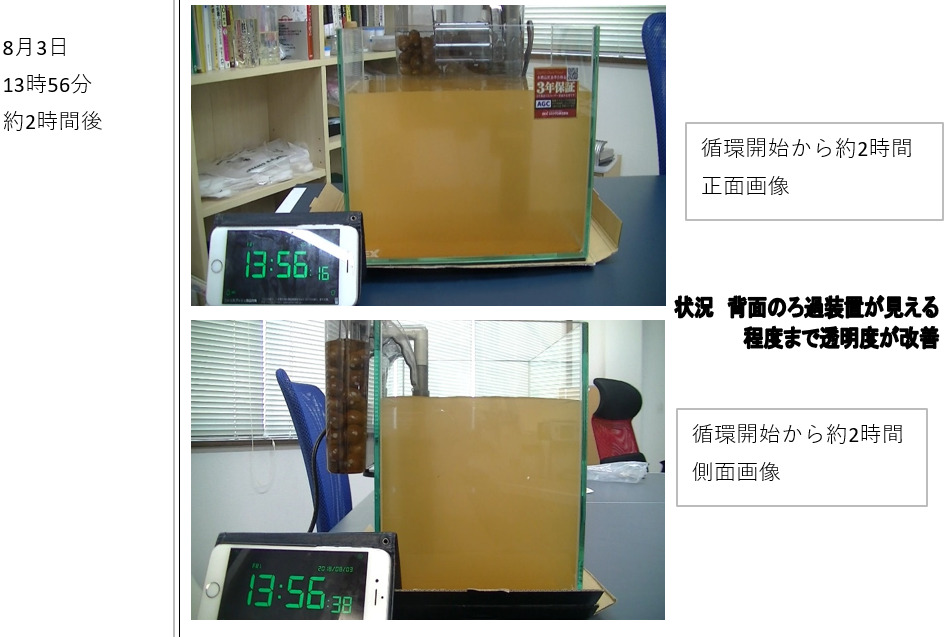 オレンジ色の井戸水をHEALBOを入れた水槽で循環しただけなのに、