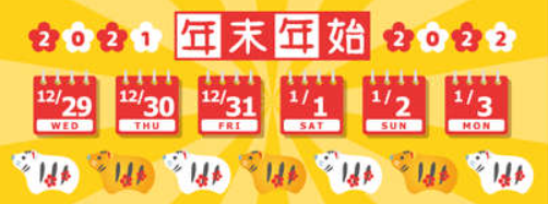 年始年末休業のお知らせ 2021.12.16 NEWS 平素は格別のご高配を賜り、誠にありがとうございます。 誠に勝手ながら、年末年始休業日を下記のとおりとさせていただきます。 年末年始休業期間:2021年12月29日(水)~2022年1月3日(月) ご不便をおかけいたしますが、何卒ご了承いただきますようお願い申し上げます。 ※お問い合わせにつきましても、2022年1月4日(火)以降回答をさせていただきます。 コメントは受け付けていません。
